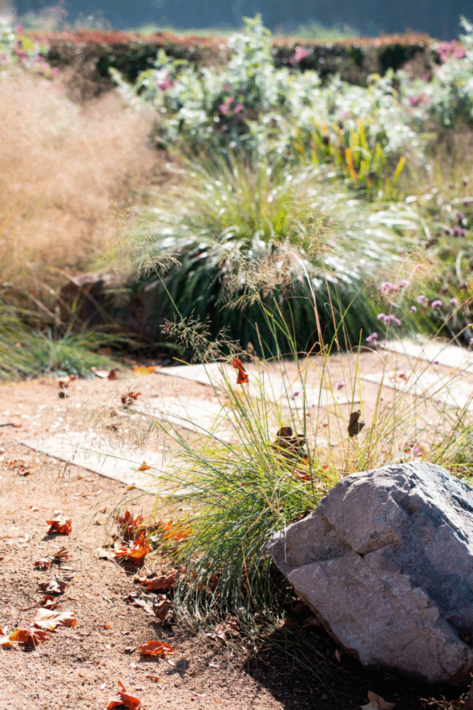 El diseño de este jardín consistió en remodelar un jardín existente al que se le quería dar vida y color. Se crearon diversos espacios en el jardín, delimitados con macizos que buscaban entregar estructura y color a lo largo de todo el año.