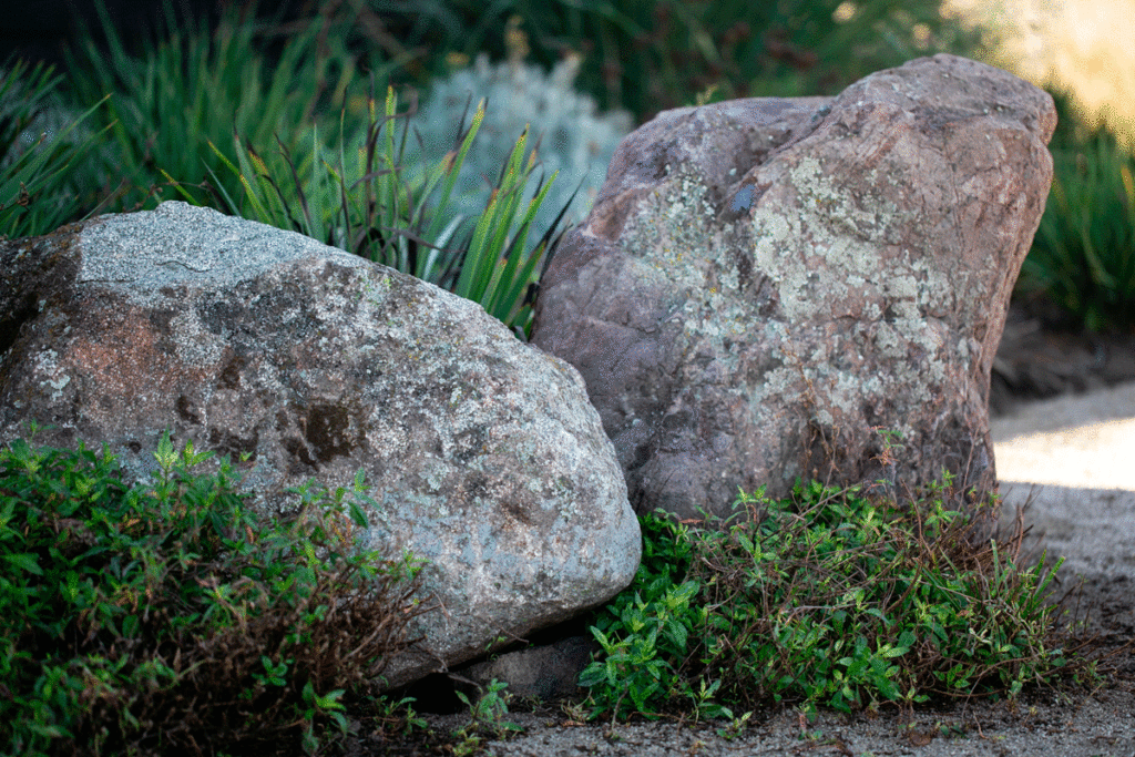 Utilizamos la piedra como material base, utilizándola para todas las construcciones y piedras grandes como elementos decorativos.